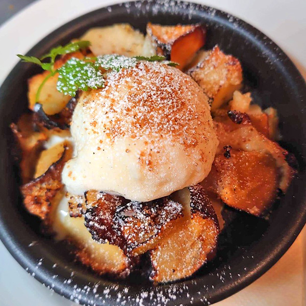 - 〇 りんごのグラタン、寺町畑さんの大地飼い自然卵のバニラジェラート