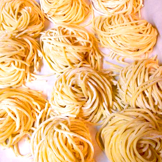 上記パスタは、東京の老舗製麺所 #浅草開化楼さんの低加水パスタフレスカ(生パスタ)#カラヒグ麺を使用しています。